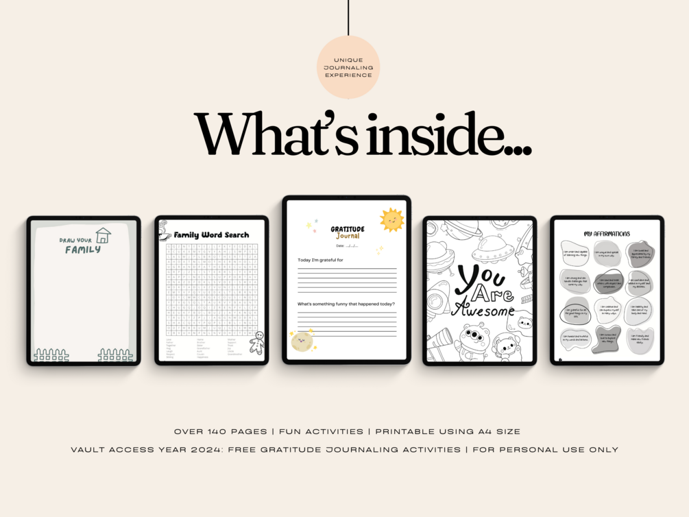 Gratitude Journal for Kids | Digital and Printable Format | Journal Vault Access 2024